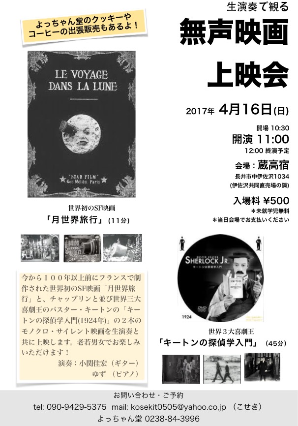 15日は廃校になった小学校での、子供たちへの無声映画上映会。
